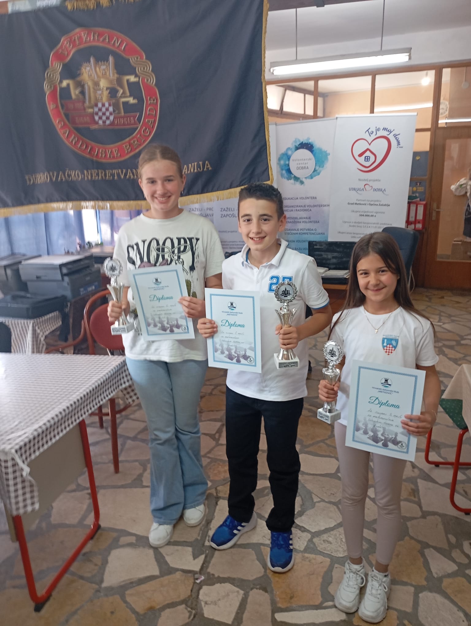 18.5.2025. - U suradnji sa ŠK Metković u čast 34.obljetnice A satnije ZNG Metković održan je međunarodni šahovski turnir za kadete na kojem je sudjelovalo 18 talentiranih mladih šahista iz Čitluka, Međugorja, Širokog Brijega i Metkovića, koji su se natjecali u izrazito jakoj konkurenciji. Najveći uspjeh ostvario je Ivan Ćorić iz Čitluka, koji je dominirao turnirom osvojivši maksimalnih 7 bodova u 7 kola. Drugo mjesto pripalo je Luciji Galić iz Širokog Brijega, dok je treće mjesto zauzela Neomi Jerković iz Međugorja. Turnir je završio svečanom podjelom prigodnih nagrada, uz ugodno druženje koje će sudionicima ostati u lijepom sjećanju. Ovaj događaj ujedno je bio uvertira za nadolazeći seniorski šahovski turnir koji će se održati za dva tjedna. |